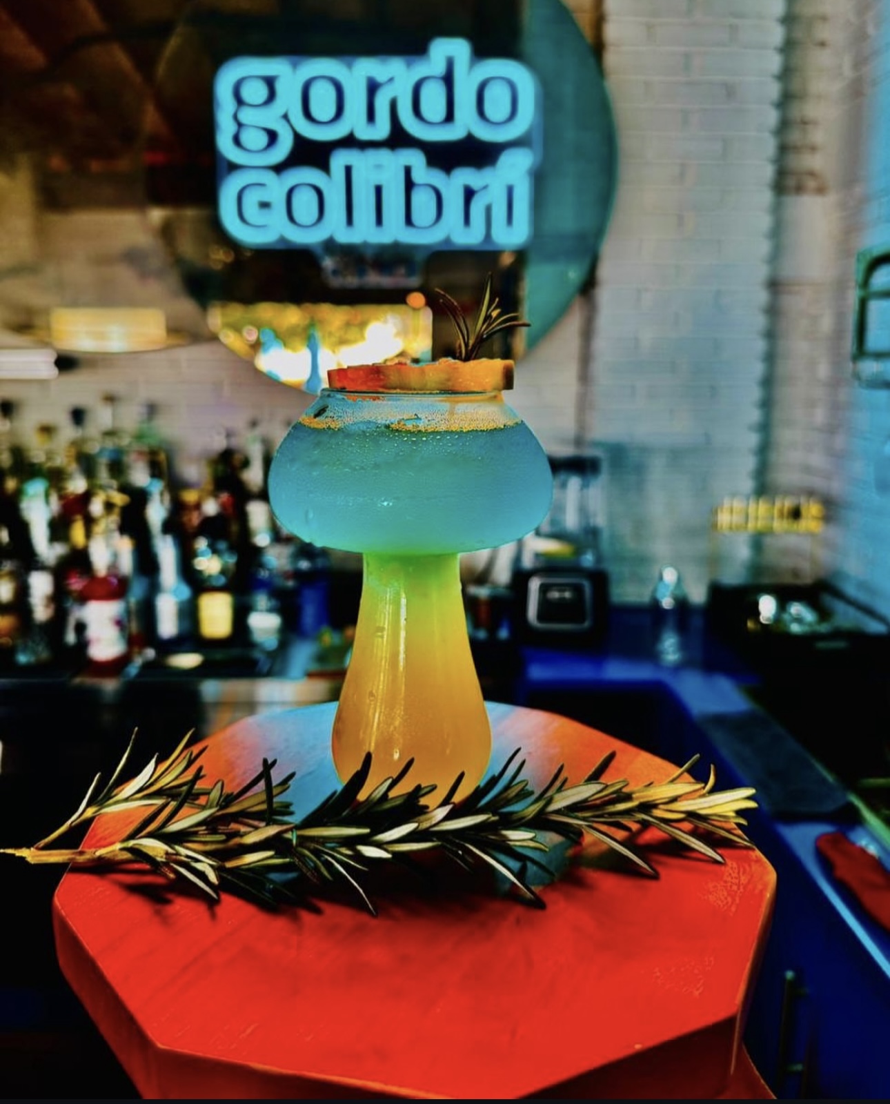 DESTILADO ARTESANAL DE MEZCAL, PULPA DE MARACUYÁ NATURAL, PULPA DE MANGO, NOTAS CÍTRICAS DE JUGO DE LIMÓN Y NARANJA, ACOMPAÑADO DE SAL CON JAMAICA ARTESANAL.